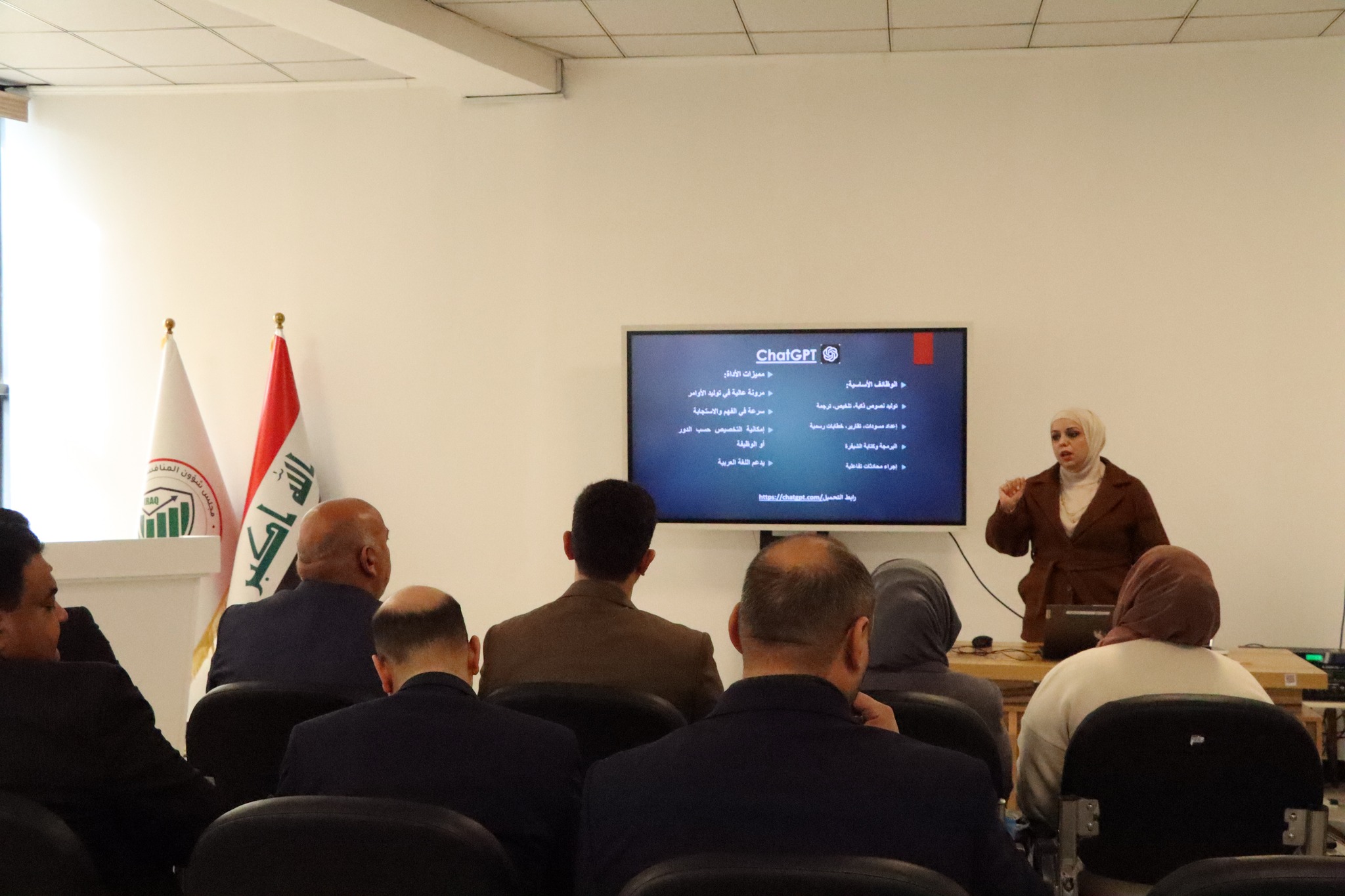 وقدمت الورشة الآنسة زينب مجيد من قسم تكنولوجيا المعلومات، حيث تناولت خلالها التطبيقات التقنية لاستخدام أدوات الذكاء الاصطناعي في بيئة العمل، وأثرها في رفع كفاءة الأداء وتحسين جودة الإنجاز، فضلاً عن استعراض أبرز التحديات المرتبطة بتوظيف تقنيات الذكاء الاصطناعي في المؤسسات.